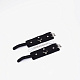 Изделие состоит из двух деталей: основа прямоугольной формы из натуральной кожи черного цвета и ремешок с прочной хромированной фурнитурой в виде овального кольца . Расположение ремешка через прорези основной части не только является стильным декоративным решением, но и служит для точной регулировки размера, обеспечивая идеальную посадку (от 15 до 22 см).