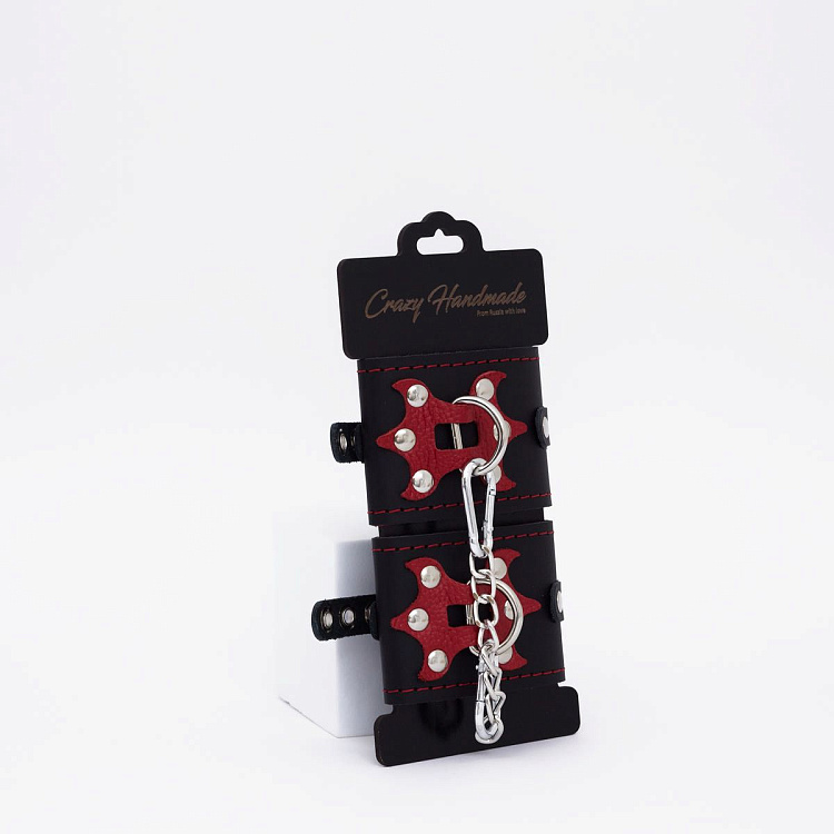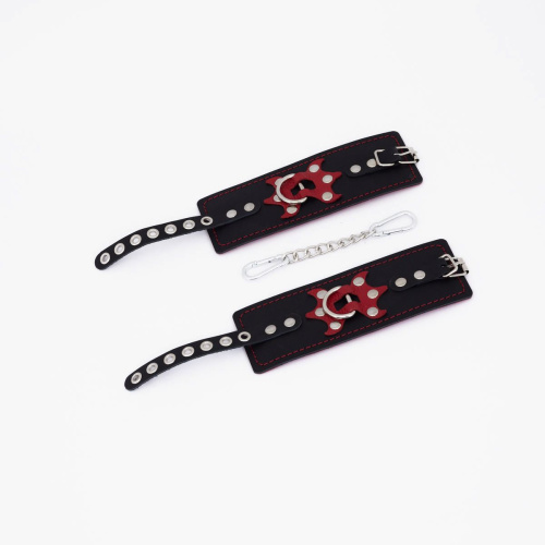 Красная декоративная строчка добавляет изделию стильный акцент, подчеркивая его элегантность. Особый шарм наручникам придает элемент в виде трезубца , который вместе с игрой цветов и фактур пробуждает самые смелые эротические фантазии.