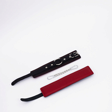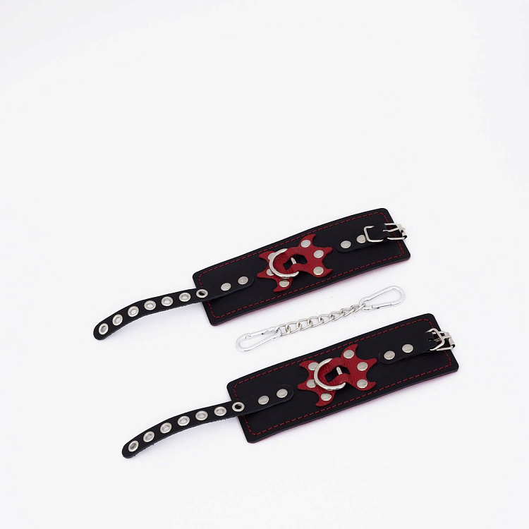 Комплект красных наручников и оков на металлических креплениях с кольцом