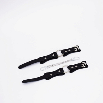 Наличие двух колец и карабинов, соединенных между собой кожаным ремешком, позволяет использовать изделие как раздельно – аксессуар-манжеты, так и как оковы для фиксации. К широким металлическим кольцам также можно присоединить и другие аксессуары при помощи карабинов.