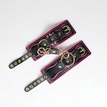 Наручники для сексуальных игр, изготовлены из поливинилхлорида, соединены между собой цепочкой с карабином. Внутренняя часть изготовлена из мягкого материала для комфортного использования. Размер регулируется при помощи липучки.