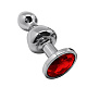 Серебристая анальная втулка Wooomy Lollypop Size S с красным кристаллом