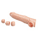 Фаллоудлинитель с реалистичной текстурой создан для усиления интимных ощущений. Инновационный дизайн позволяет регулировать глубину с помощью трёх сменных вставок, обеспечивая персонализированную посадку и максимальное удовольствие. Изготовлен из безопасного для тела материала, легко очищается тёплой водой с мягким мылом. Для комфортного использования и ярких ощущений рекомендуется применять с лубрикантом. Диаметр полости - 4,6 см.