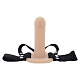 Телесный полый страпон с черными эластичными ремешками Our First Hollow Strap On