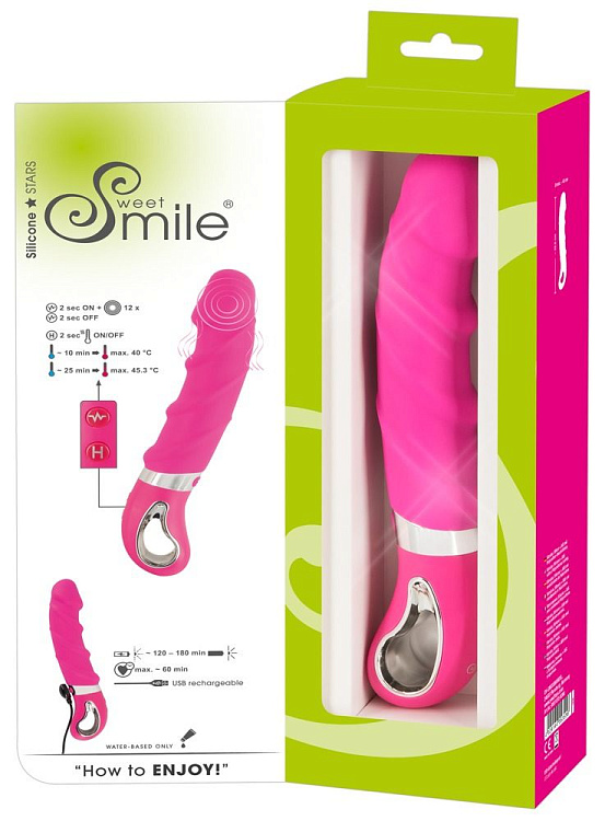 Розовый вибратор с рёбрышками и подогревом Warming Soft Vibrator - 22,8 см.