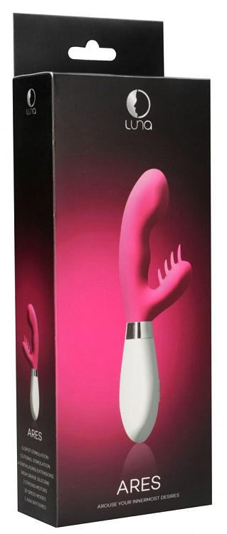 Ares – вибромасссажер кролик. Эта игрушка имеет особую эргономичную форму с ярко выраженной, имеющий определенный уклон головкой, и гибкий клиторальный отросток с четырьмя усиками, что делает стимуляцию очень необычной. Вибромассажер имеет два мощных двигателя, по одному в каждом отростке, обеспечивающих 10 функций вибрации, способной достигать 7000 оборотов в минуту, при этом уровень звука не превышает 50 дБ.й клиторальный отросток с четырьмя усиками, что делает стимуляцию очень необычной. Вибромассажер имеет два мощных двигателя, по одному в каждом отростке, обеспечивающих 10 функций вибрации, способной достигать 7000 оборотов в минуту, при этом уровень звука не превышает 50 дБ.