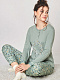 Пижама: кофта с длинным рукавом, круглый ворот застегивается на пуговицы на планке, и длинные брюки с манжетами. Выполнена из трикотажа интерлок. В комплекте: кофта, брюки.