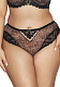 Трусики-бразилиана со средней линией талии Black Panther выполнены из эластичной сетки с хищным принтом, проймы ног из богато переплетенного черного кружева, спереди V-образная вставка из телесной сетки с кружевом. Ластовица проложена 100% хлопком.