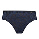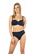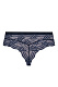 Трусы-стринги Debora выполнены из темно-синего кружева, спереди продублированы черной сеткой, резинка широкая эластичная, ластовица из 100% хлопка.