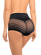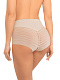Трусы с высокой линией талии. Передняя деталь выполнена из деликатной микрофибры, задняя деталь и вырез ножки - из декоративного полотна с чередующимися полосками разной ширины. По талии пришита деликатная эластичная тесьма. Хлопковая ластовица. В изделии отсутствуют боковые швы, что делает его максимально комфортным и незаметным под одеждой.